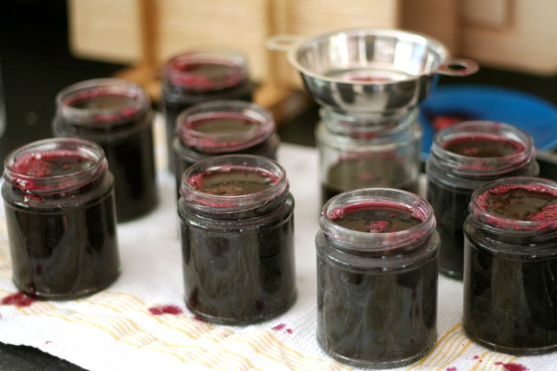 After all September turned out to be a great month to pick wild blackberries. I made jelly twice — the first time I only used blackberries, later on I added cooking apples to the mix (they're high in pectin, which helps the jelly set) — and decided to document the process. The first image shows a basic jelly recipe from a classic Portuguese cookery book, the Pantagruel (I've got my grandmother's copy from 1952) but there's a great recipe in Pam Corbin's preserves book. If you want to know more about how I go about preserving fruit, you can read my post on making raspberry jam.